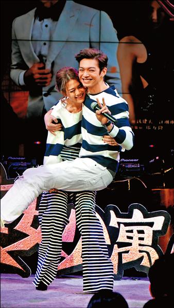 辰亦儒(前)今在北京記者會被周秀娜公主抱。華研提供