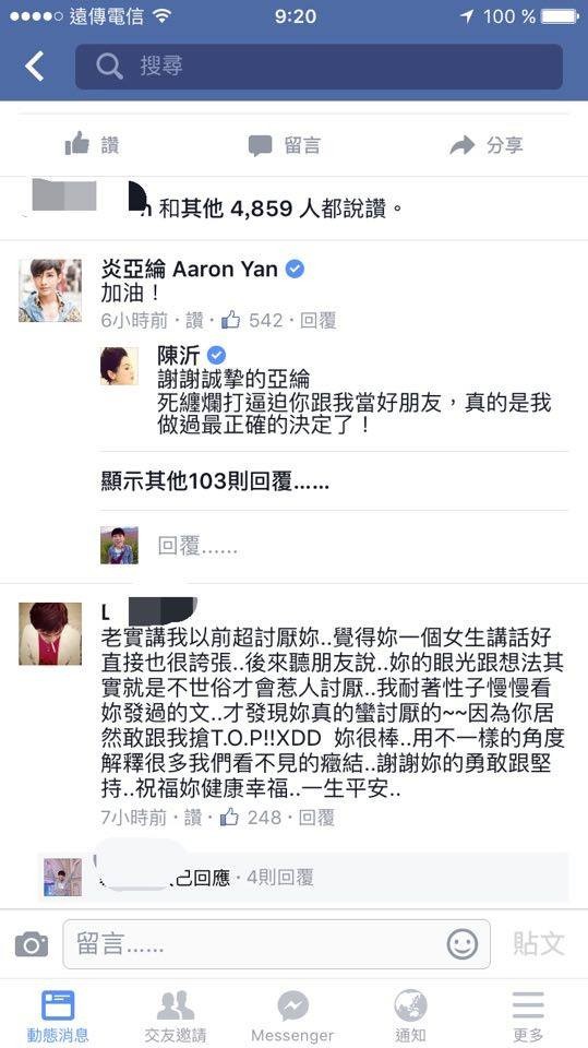 對此,陳沂稍早出面表示,其實讓她選擇關閉臉書的最重要原因,是因為今天炎亞綸到她臉書留了一個「加油」為她打氣,卻導致大陸網友跑去大罵炎亞綸,讓她看了相當愧疚。