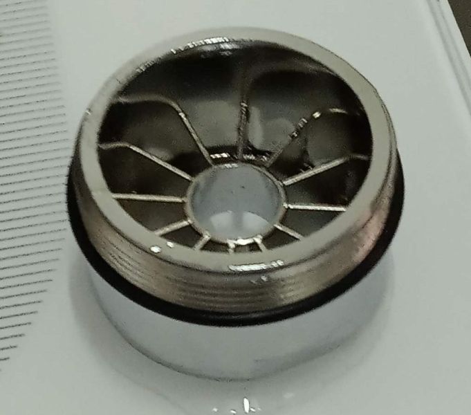 龍頭下方的出水口, 出廠即安裝了一個類似發泡器的環狀物.
