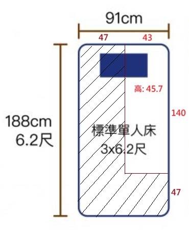上圖空白區,訂製一個床箱/床架 (長 140 x 寬 43 x 高 45.7)