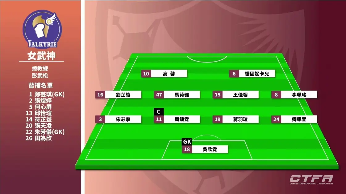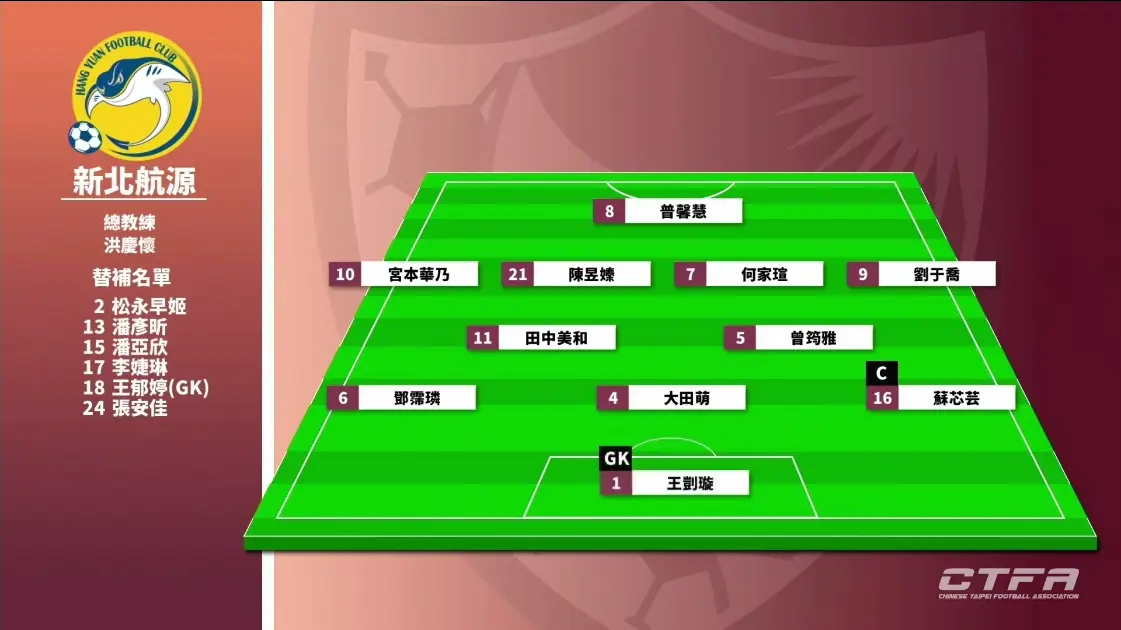 6 (6) 花蓮女足 9 3 2 4 11 16 15 1
