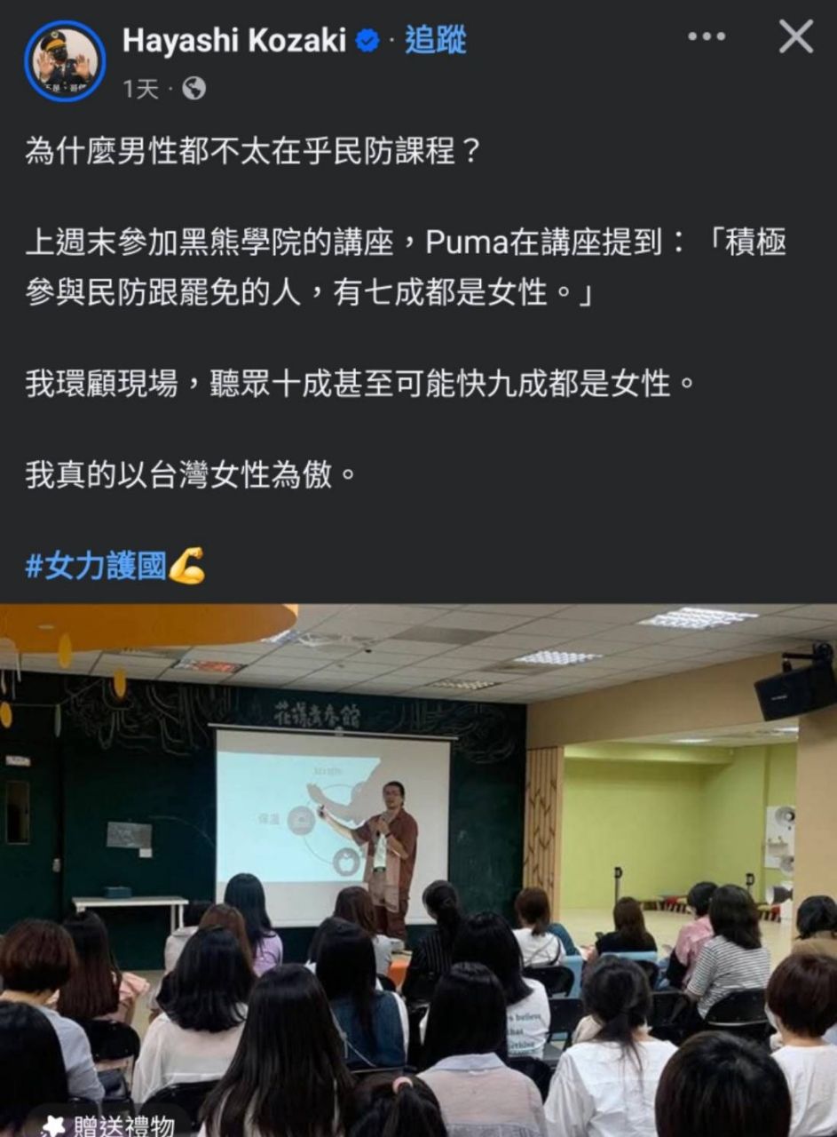 : 剛才在臉書剛好看到有人分享為什麼男性不在乎民防課程