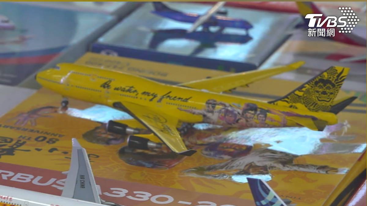航空迷收藏,特殊塗裝模型和飛機蒙皮鑰匙圈。(圖/TVBS)