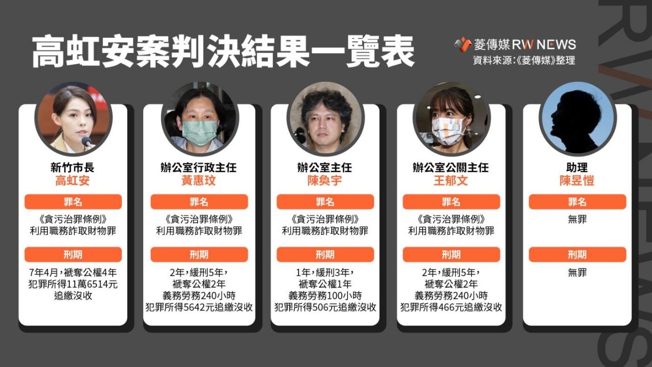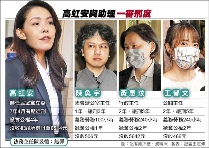 ,否認犯罪;認罪的前國會辦公室行政主任黃惠玟則嗆「高虹安欠我們4人真心的道歉」