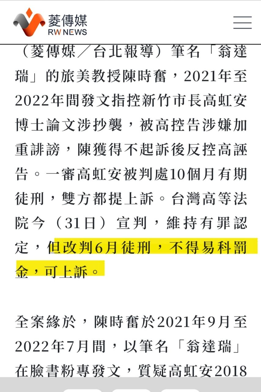 標題Re: [新聞] 貪污無罪、偽造文書判6月 高虹安逆轉勝可復職