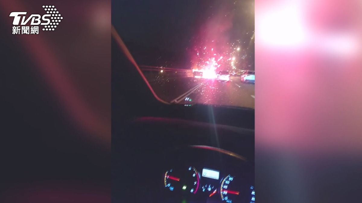 國道煙火秀?!載爆竹貨車突起火 炸出「熊熊火光」嚇壞用路人