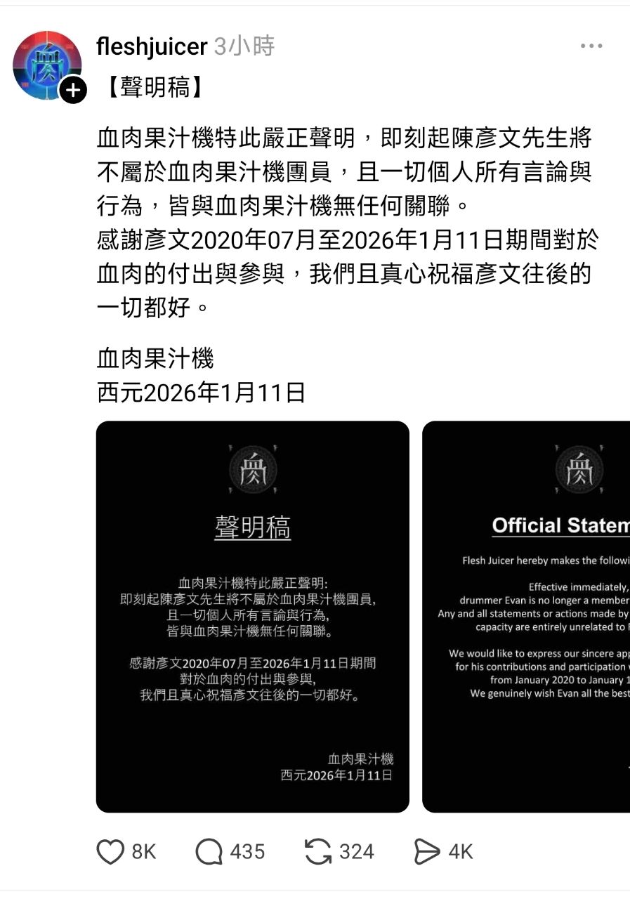 標題[問卦] 血肉果汁機又少一個鼓手了?