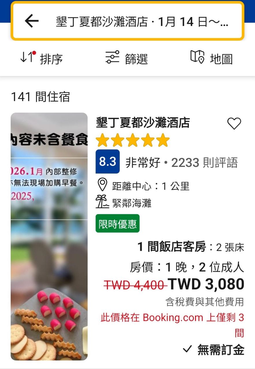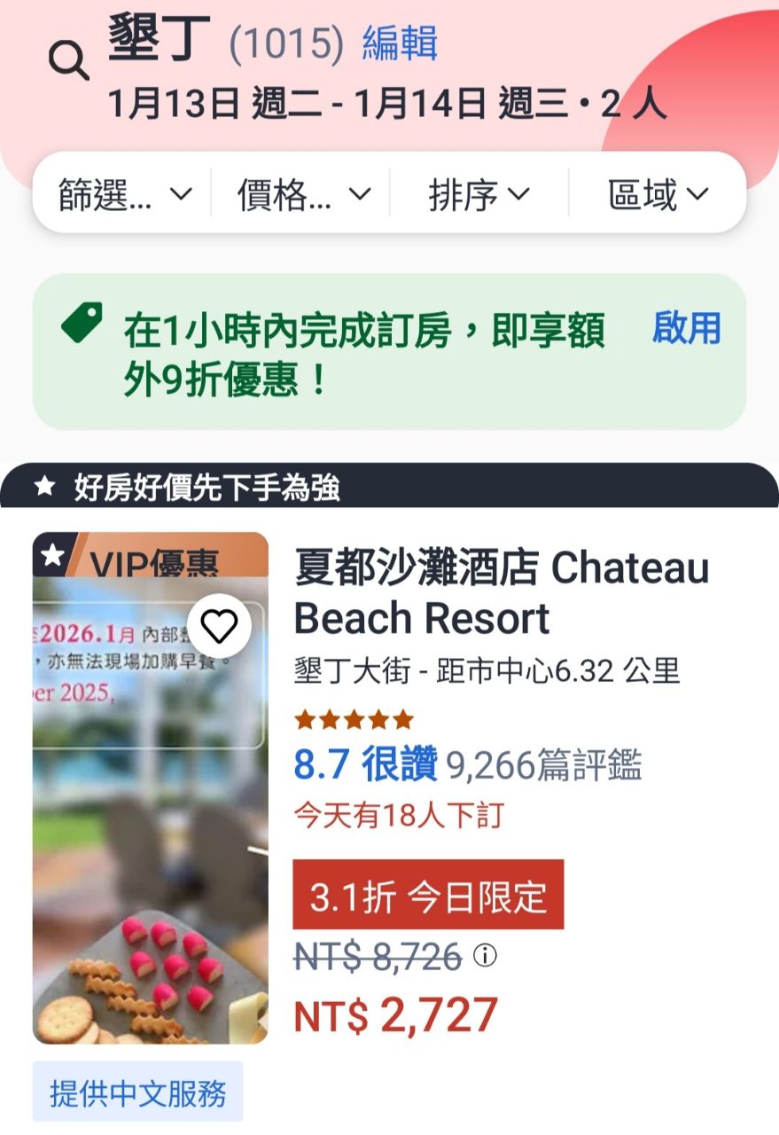 : 特別查了一下下個月初一的住宿價格