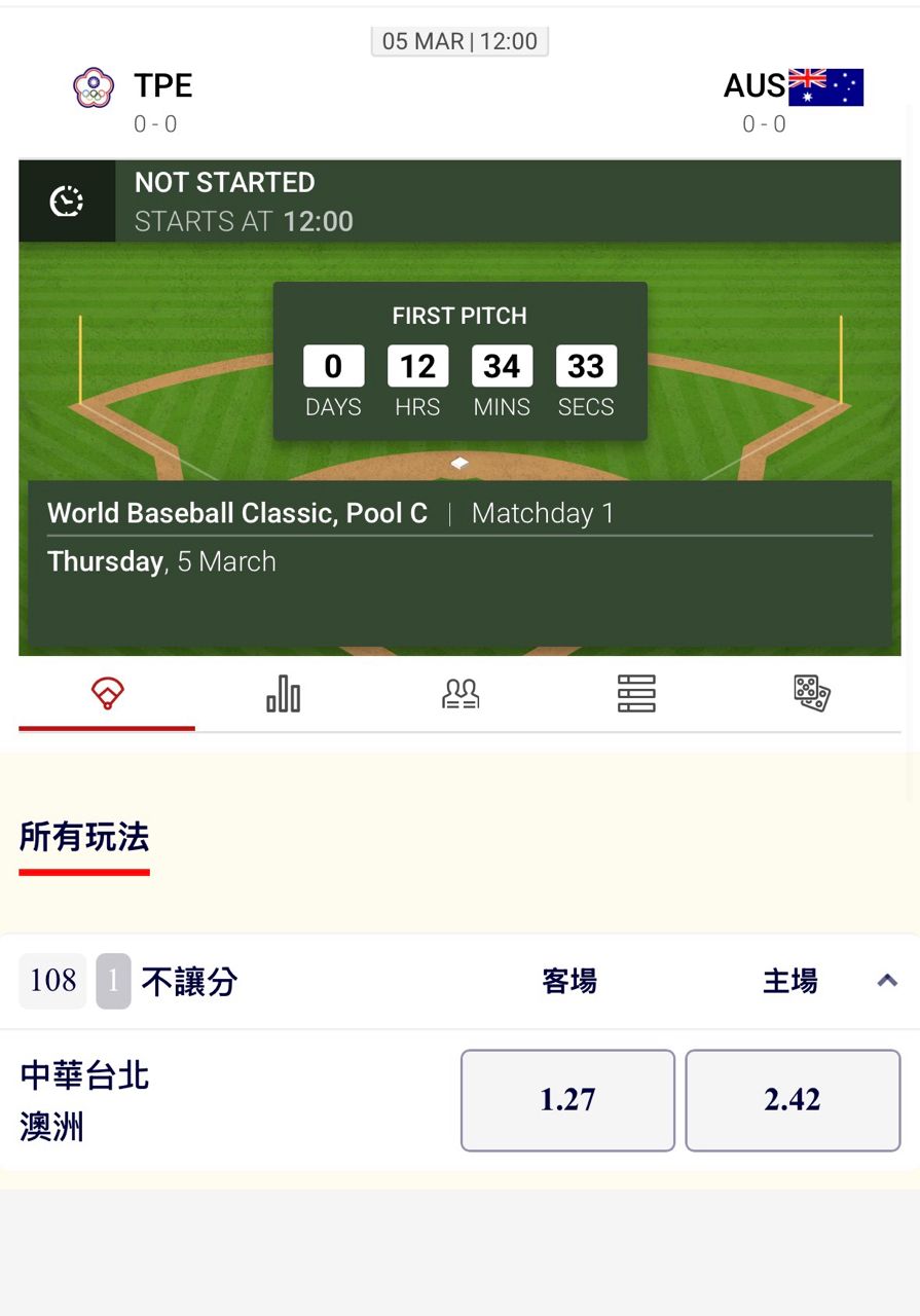 我想說中華隊的贏的賠率還有1.27
