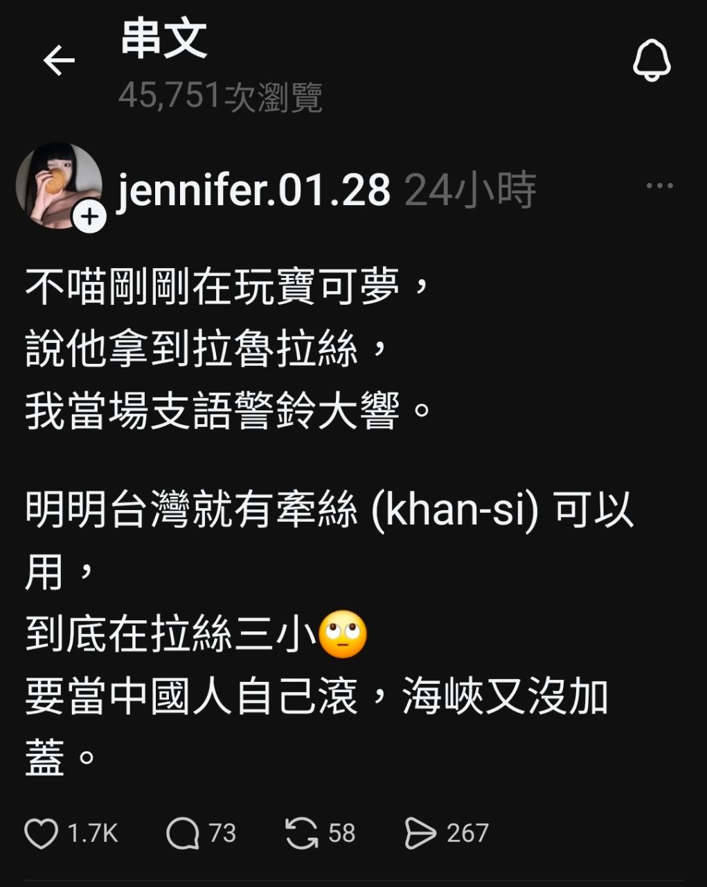 台灣明明就有牽絲(khan-si)能用,到底是在拉絲三小?