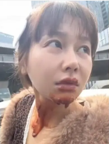 布,血肉模糊的傷處令人觸目驚心。她講述了自己拍攝「噴火蛋糕」時被火焰反噬時的感