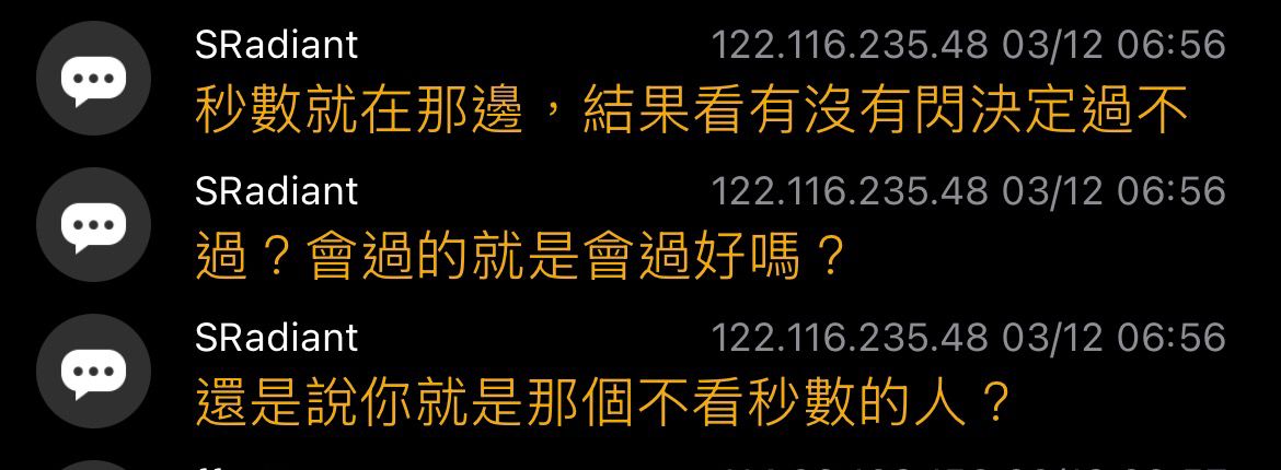 52F:→ SRadiant: 秒數就在那邊,結果看有沒有閃決定過不 122.116.235.48 03/12 06:56