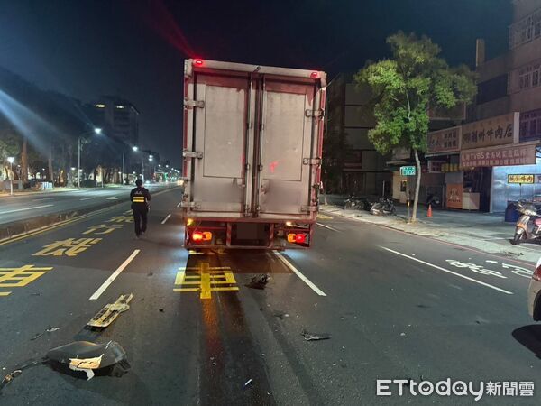 滿是車殼碎片。警方針對大貨車王姓駕駛進行酒測,酒精濃度為0,至於陳姓騎士的酒測