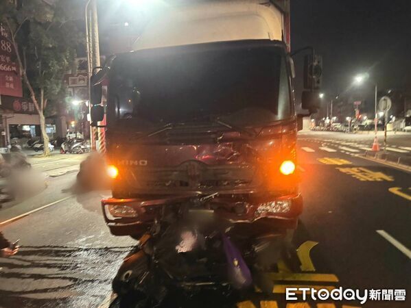 疑似因闖紅燈,遭到一輛由54歲王男駕駛的大貨車猛烈撞擊。警消獲報趕抵現場,立即將