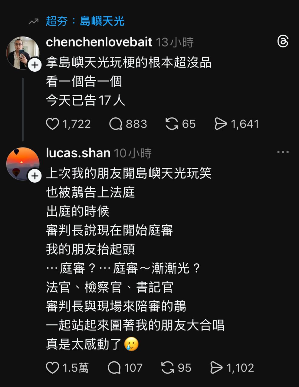 標題[問卦] 怒告玩島嶼天光梗 結果法庭大合唱