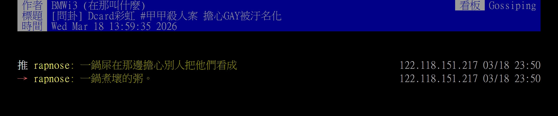 ※ 文章網址: https://webptt.com/m.aspx?n=bbs/Gossiping/M.1773851212.A.D44.html
