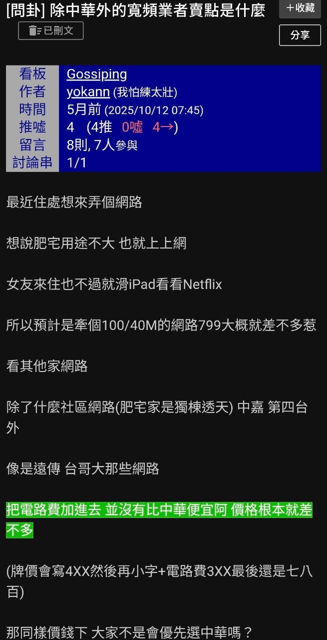 隔天10/12又發一篇問“中華以外的業者賣點”
