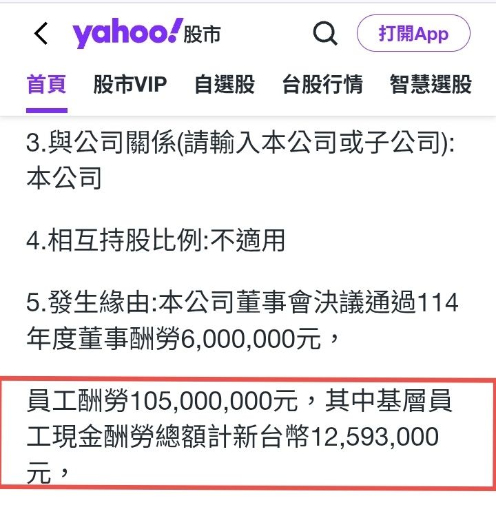 員工酬勞1億零5百萬裡面有1千多萬是給基層員工的