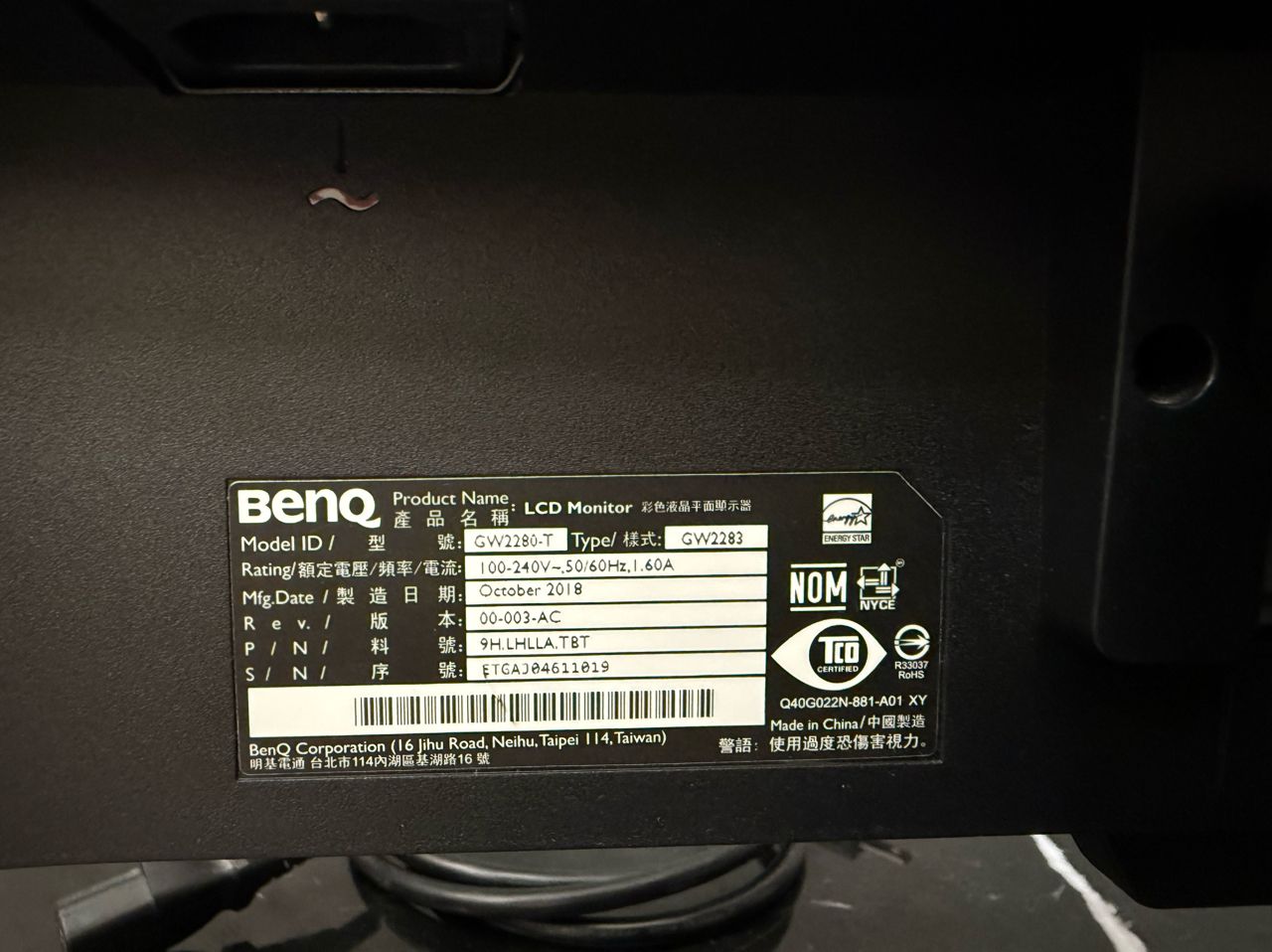 ◎硬體型號: BenQ GW2280 22吋螢幕
