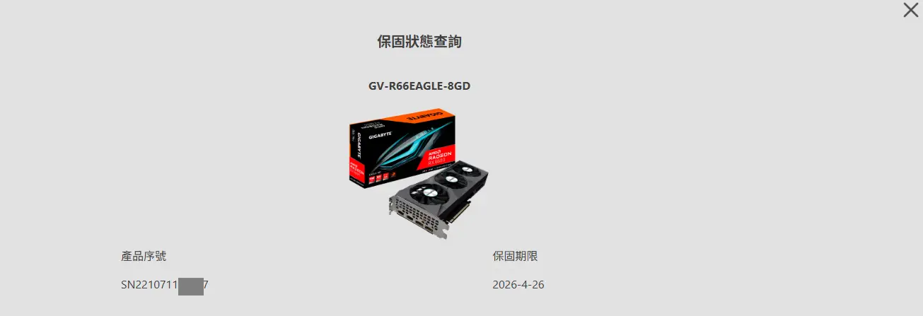 技嘉官網訊號查詢保固至 2026-04-26