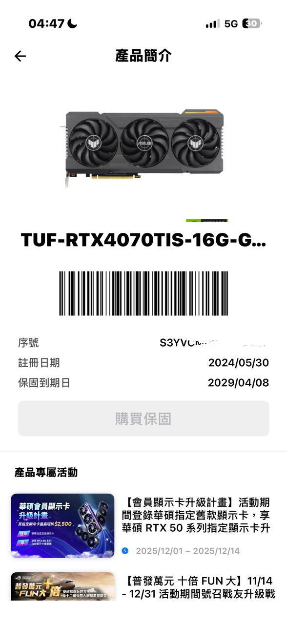 ◎品樣狀況:配件盒裝完整,已註冊五年保固至2029/04/08,升級5080故售出,售出不退