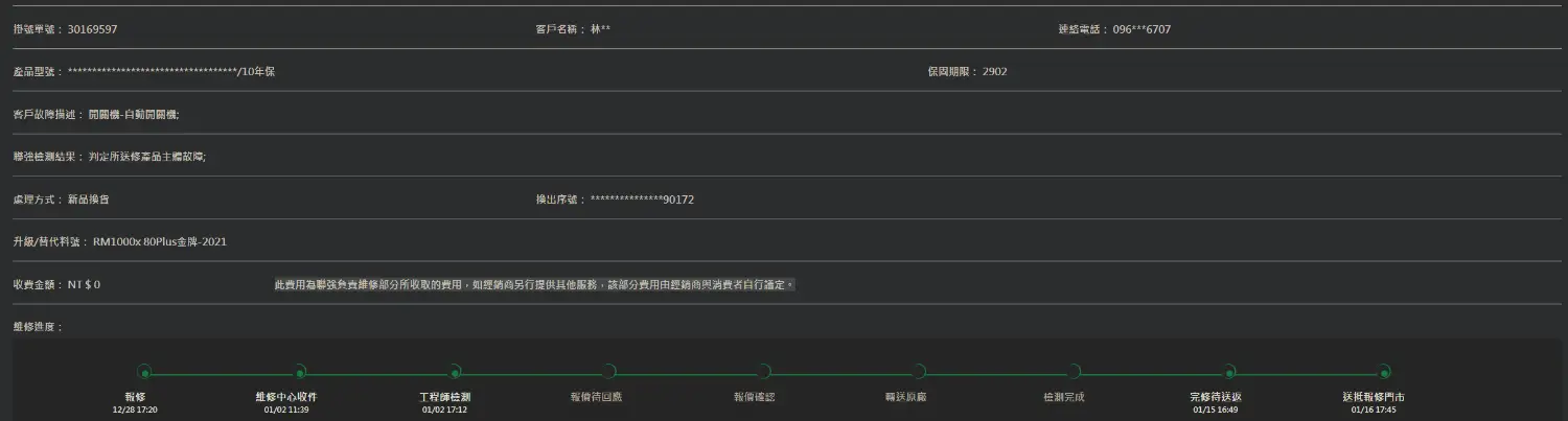 3.使用狀況:RM850X RMA回來後的升級RM1000X新品(注意這是舊款的,非ATX3.X)