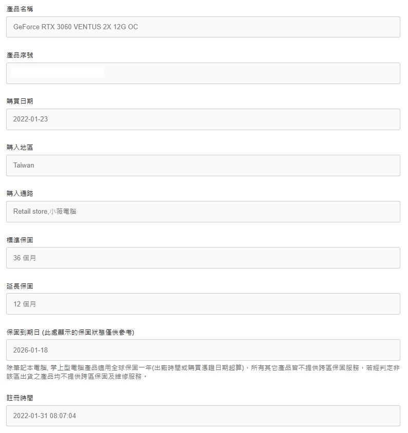 2022年1月23號於蝦皮小薇電腦以18500購買