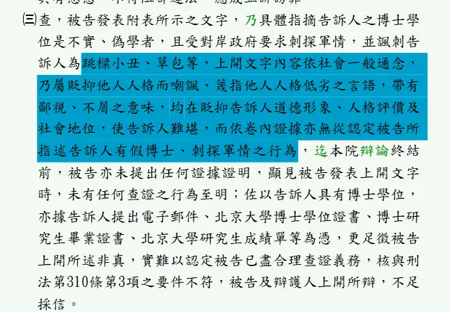 10F:→ Berotec: 低智商三個字甚至是寫在形容被告罵原告的「智障」上 07/21 18:44