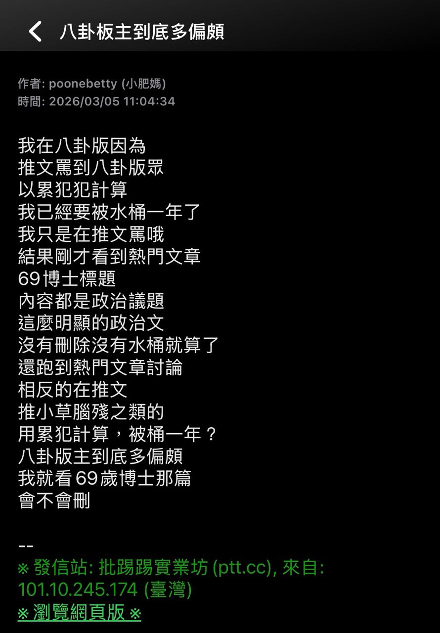 ※ 文章網址: https://webptt.com/m.aspx?n=bbs/HateP_Picket/M.1772681204.A.F16.html