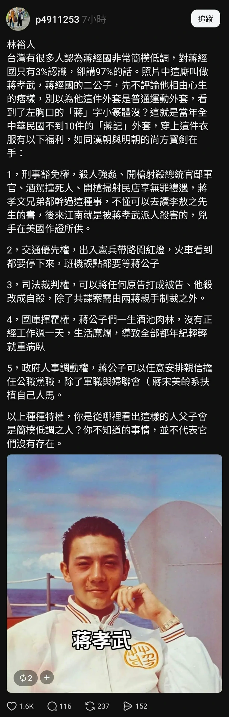 41F:→ huang19898: 蔣孝文幹過超多條都沒司法受審過 123.110.217.20 12/07 22:18