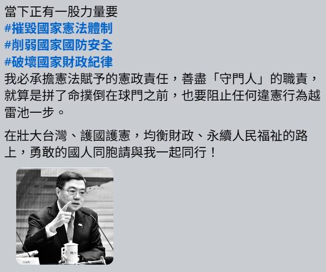 標題[討論] 卓榮泰:我是憲政守門人 對抗邪惡力量