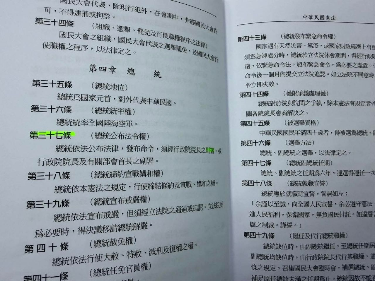 101F:→ gogen: 根本沒有不能不「副署」的條文 49.217.49.189 12/17 06:57
