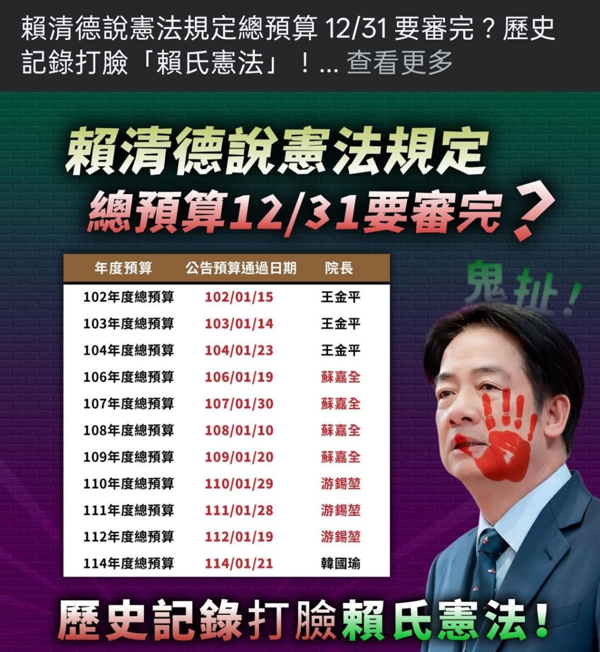 距離賴清德大總統的最後期限12/31
