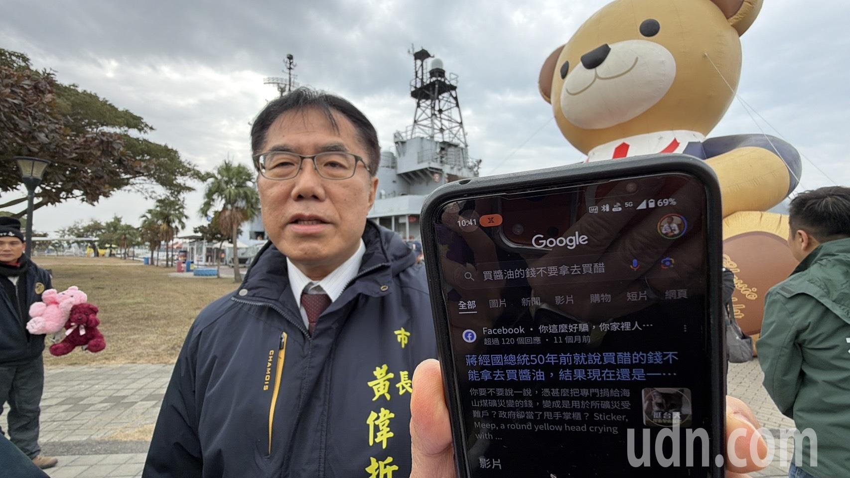 台南市長黃偉哲以蔣萬安的祖父、前總統蔣經國曾經講到「買醋的錢不要拿來買醬油」,