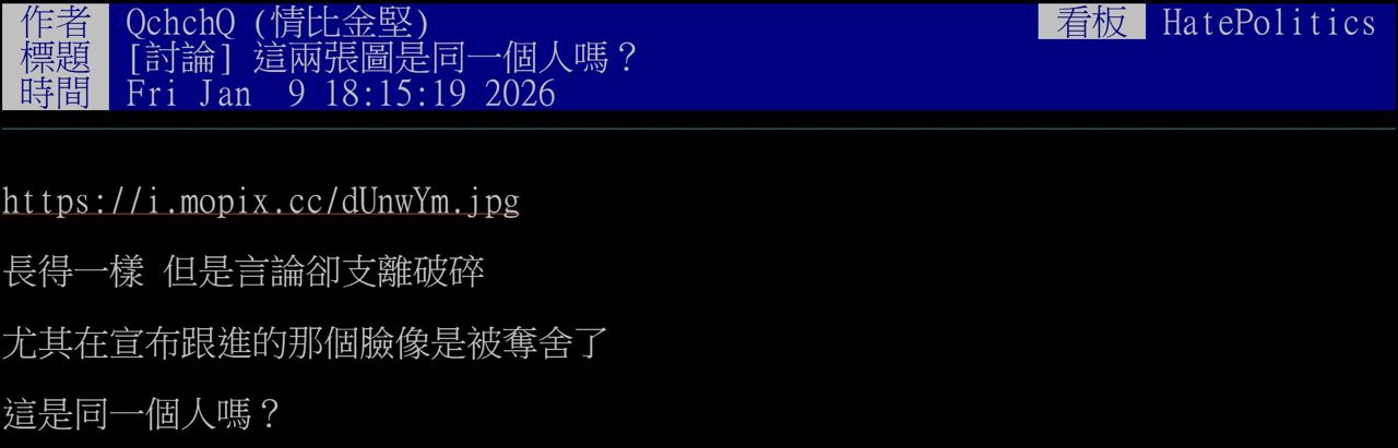 ※ 文章網址: https://webptt.com/m.aspx?n=bbs/HatePolitics/M.1767957516.A.C58.html