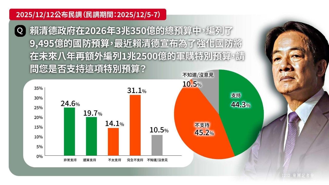 標題[討論] 44.3支持1.25兆軍購,45.2%反對