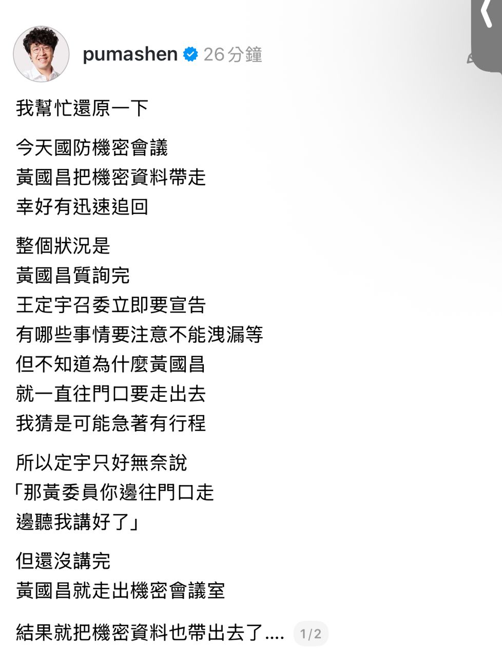 標題[討論] 黃國昌偷走國防會議資料要幹嘛?