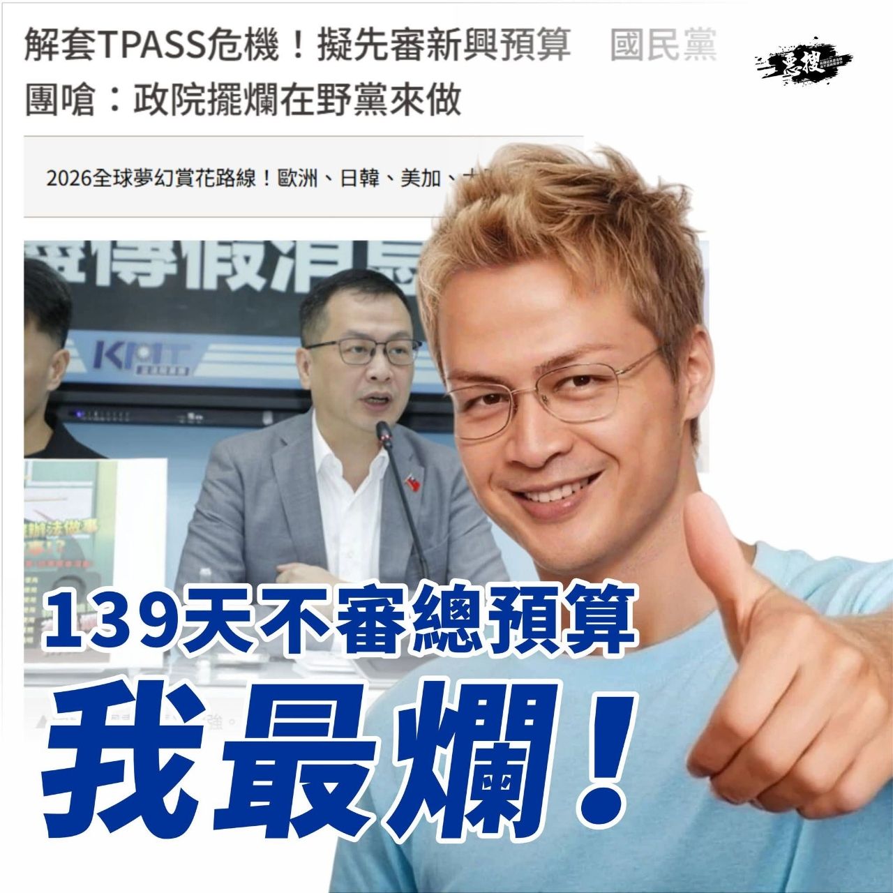 ,立法院三讀通過的所有法案預算一概不理,為反對而反對,大罷免結束之後還變本加厲
