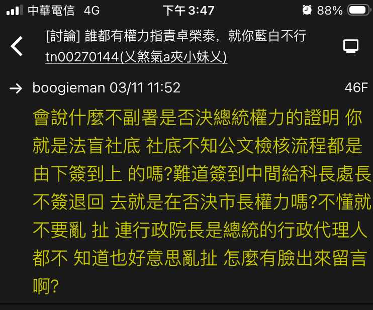 標題Re: [討論] 誰都有權力指責卓榮泰,就你藍白不行