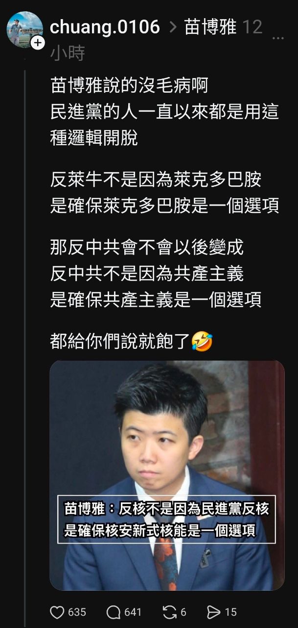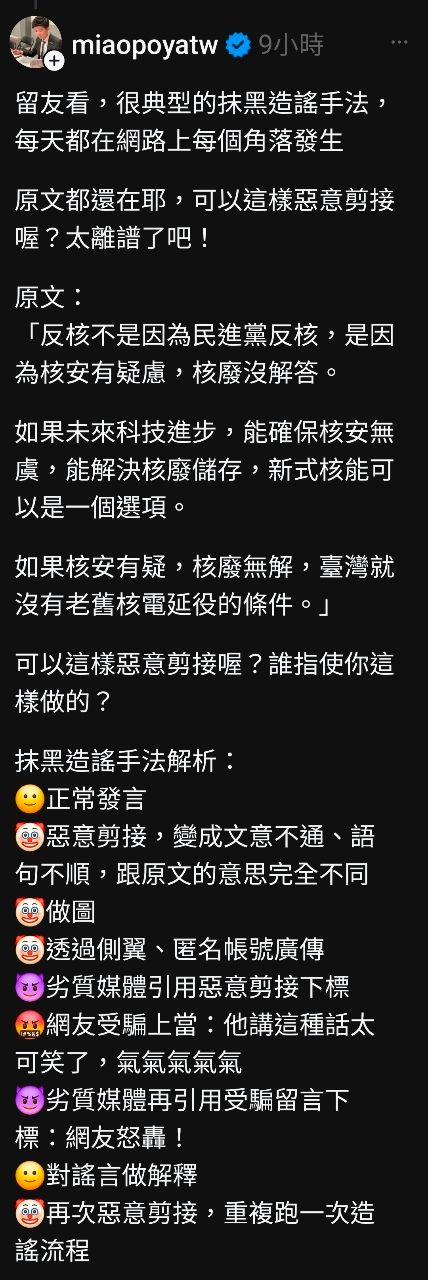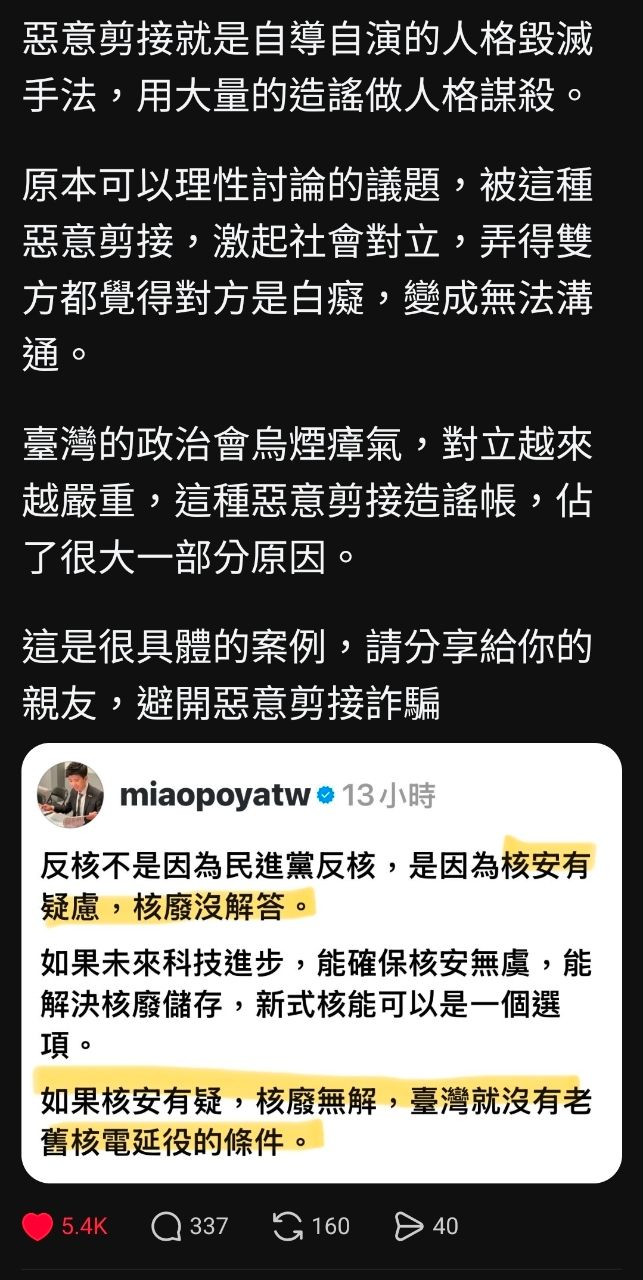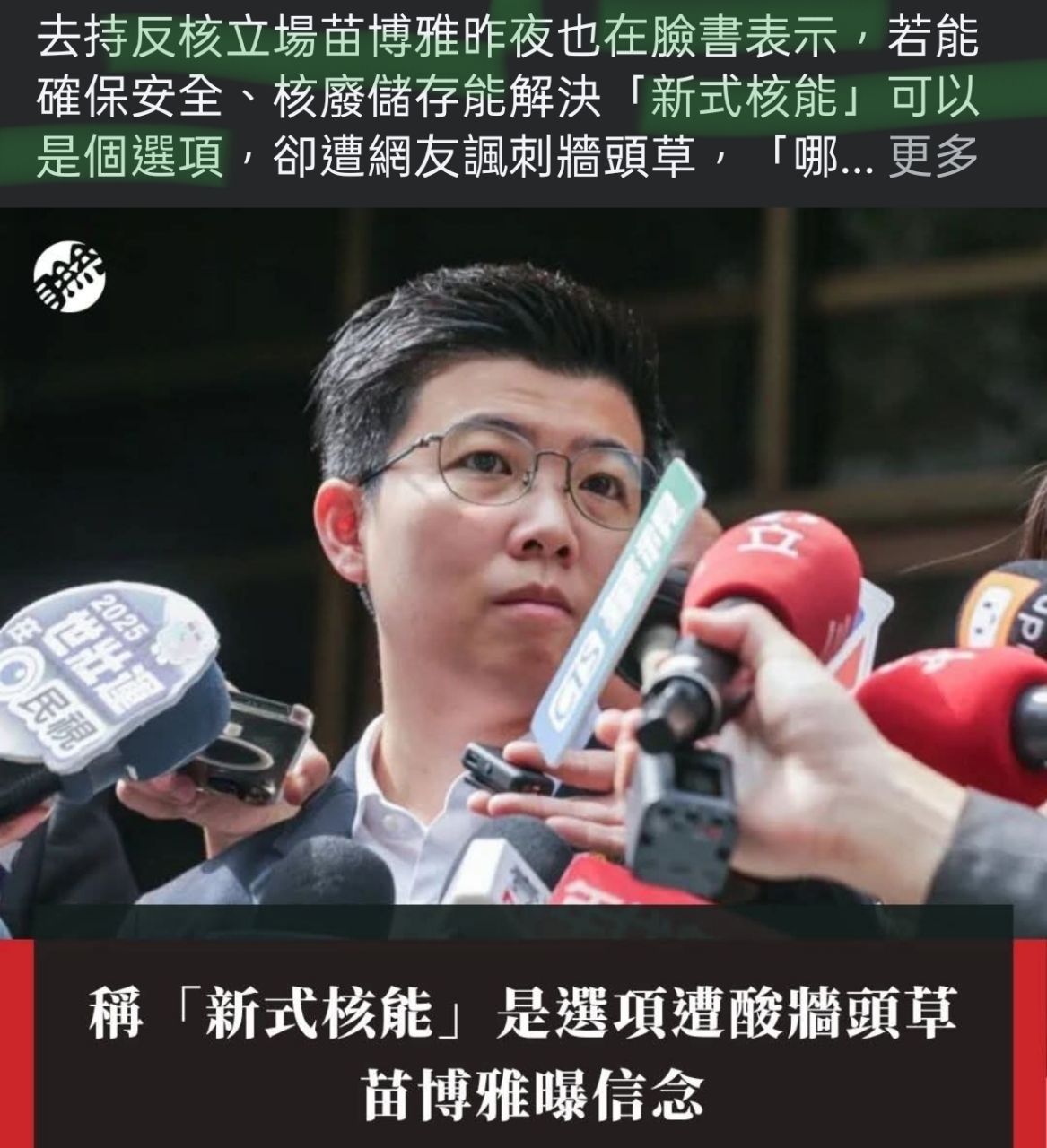 標題[討論] 慟!苗博雅:我的核能立場被抹黑了!