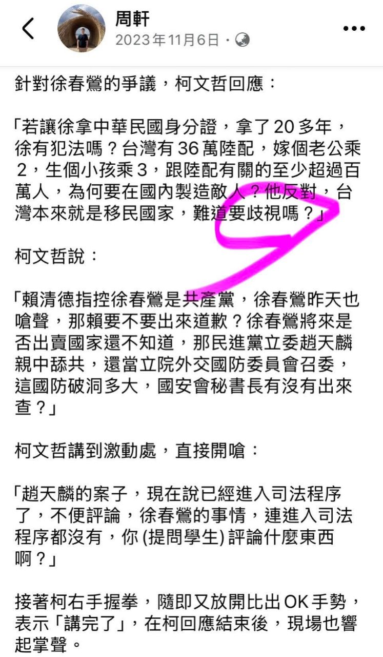 柯匪文折來高雄被中山大學男生提問