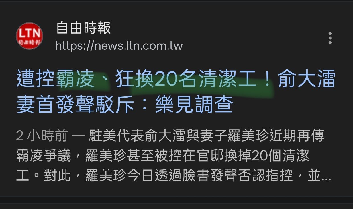 標題[討論] 民進黨駐美代表再傳霸凌,網:後台很硬