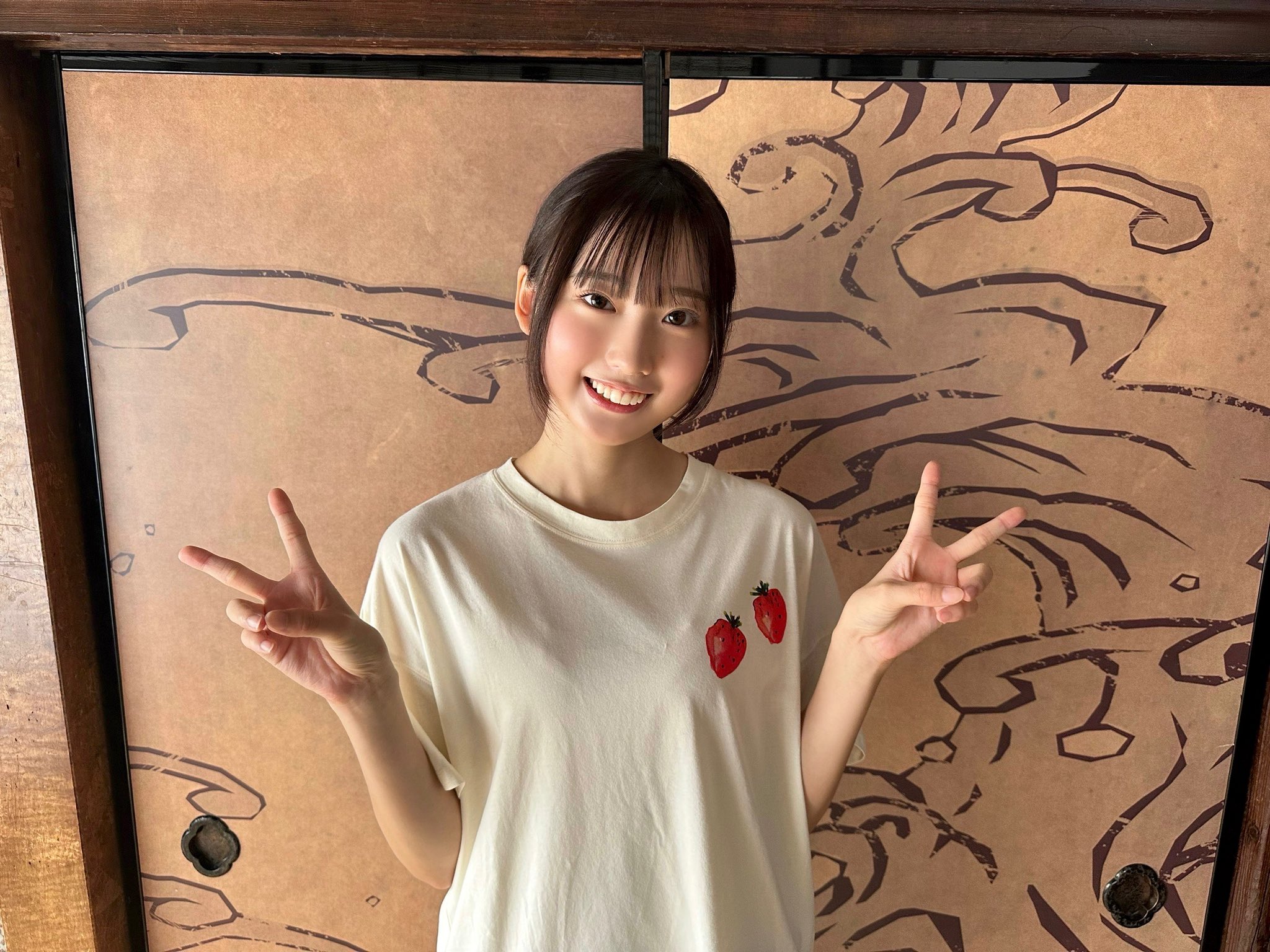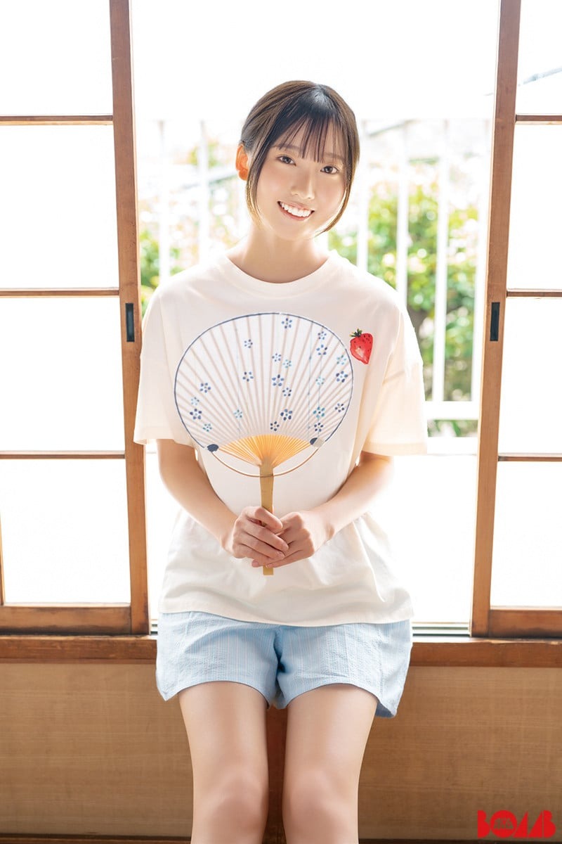身の18歳。すらっとした長い手脚にやわらかな笑顔、ほんわかした空気感が伝わるグラ