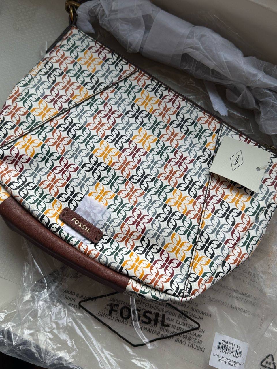 FOSSIL Skylar Crossbody White Mulit 真皮 側背包 斜背包 全新 未使用過