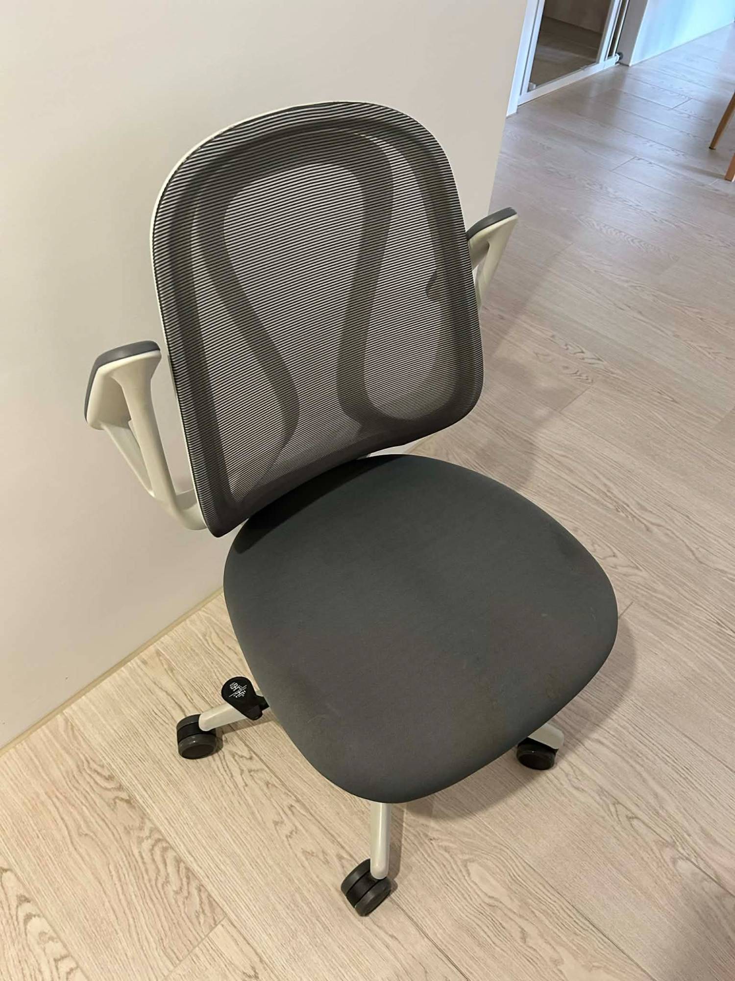簡單的辦公椅,可以調整高低、扶手可立起,但是坐著時軸心會有機械的聲音