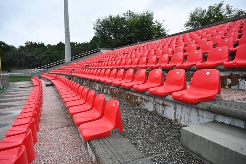 羅東運動公園棒球場更新看台觀眾席座椅。(宜蘭縣政府提供)