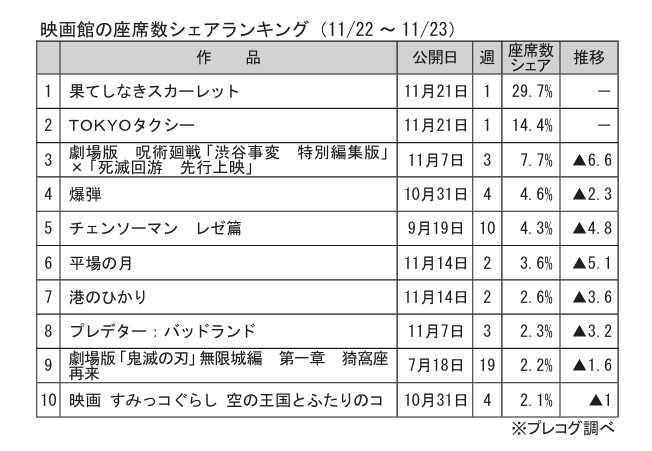 ║4║2║劇場版 呪術廻戦「渋谷事変 特別編集版」× ║3║ 2.0億║14.4億║