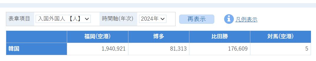 50F:→ SRadiant : 2024年入國外國人(韓國),福岡空港194萬,博多港8萬 12/17 15:47