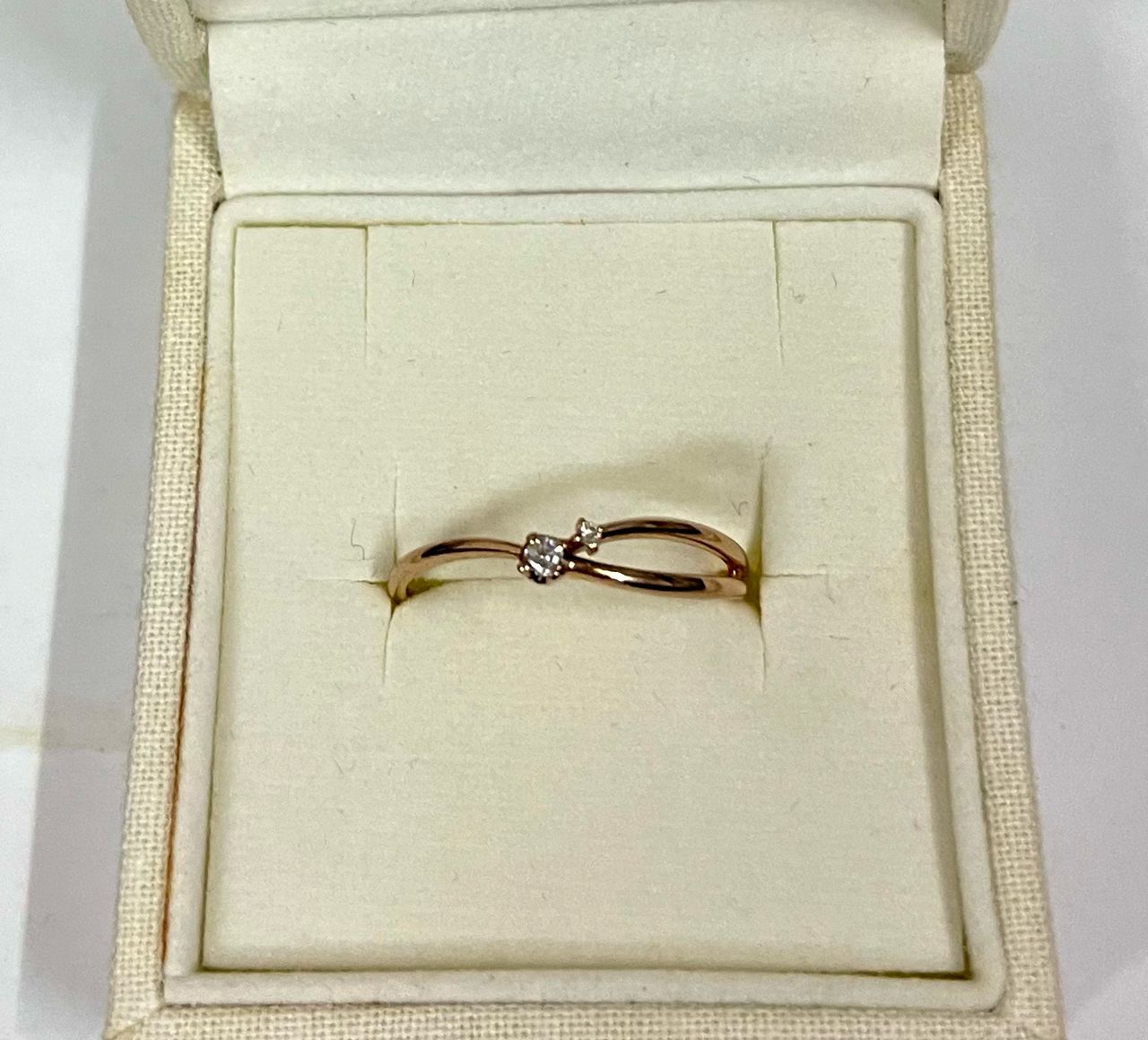 1. 18K玫瑰金流線鑽石戒指:戒圍13,可