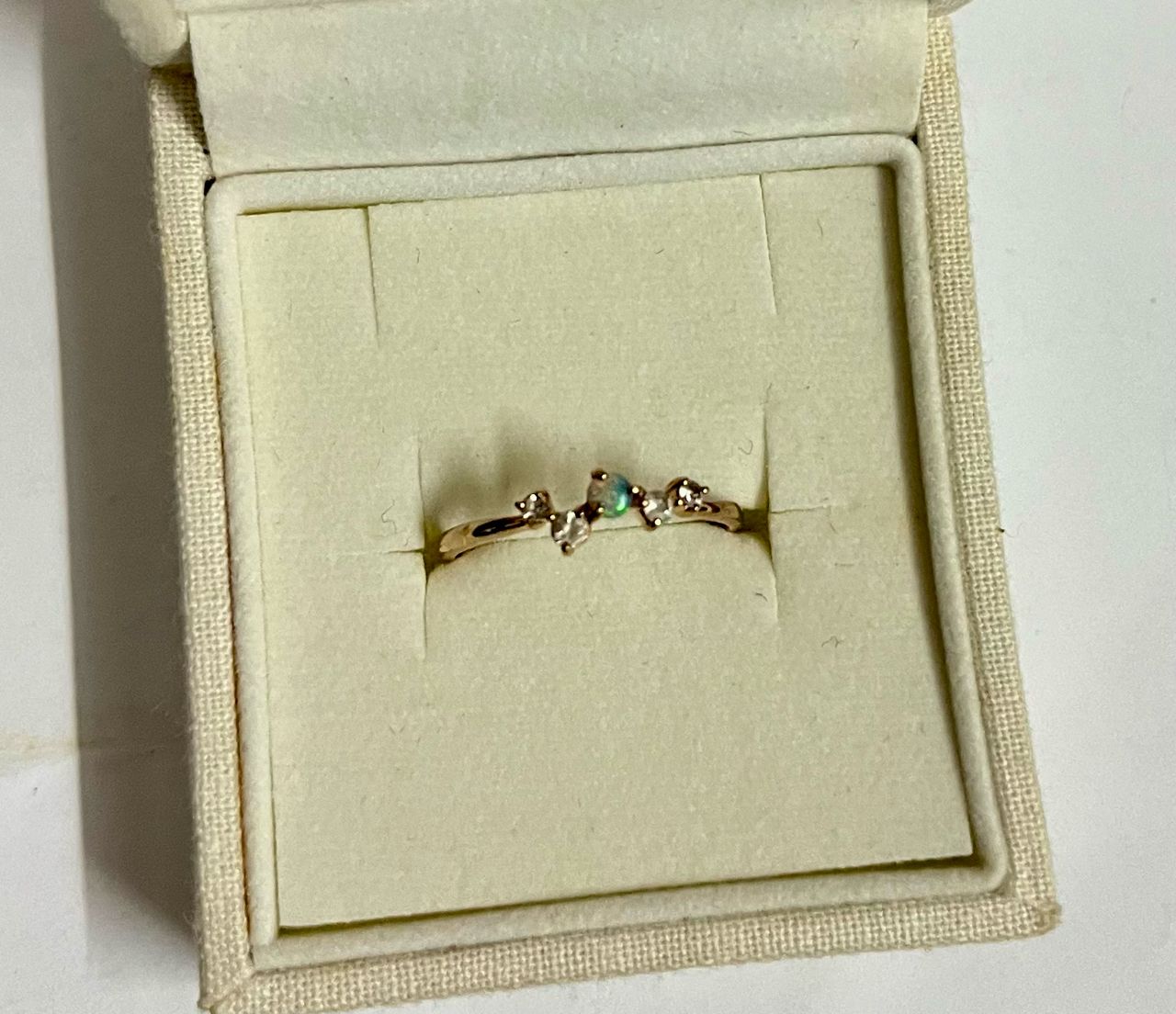 2.10K黃金蛋白石加拓帕石戒指: 購買時戒圍8號,已修改過一次,目前戒圍9號。